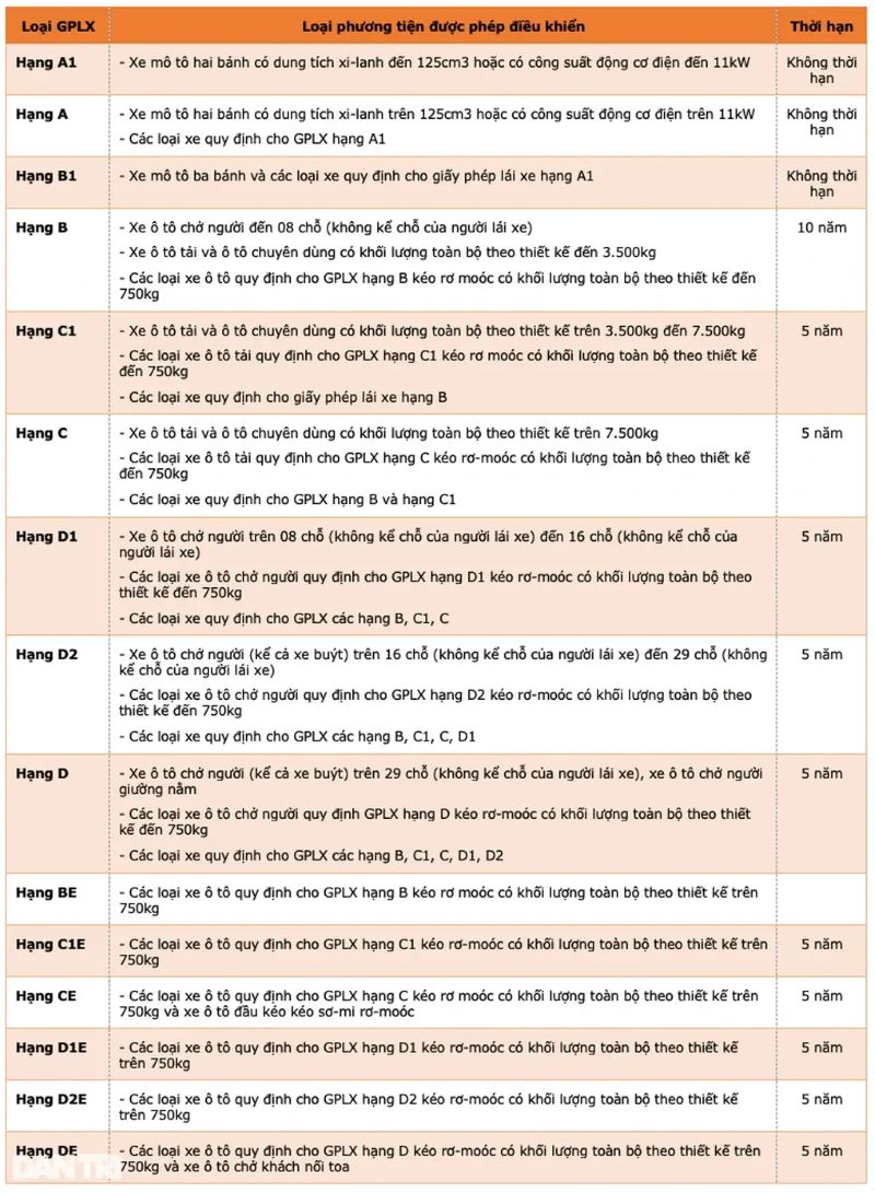 Hạng GPLX được đổi/cấp lại từ ngày 1/1/2025 (nguồn hình ảnh báo Dân Trí)